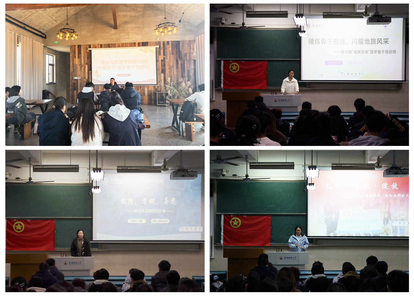 本期“地旅风华”团学骨干培训班通过系统化的理论教学、针对性的技能指导、生动的案例研讨与沉浸式的实践体验,构建了知识传授、能力培养与价值引领三位一体的育人体系。学员们不仅夯实了理论基础,掌握了实用技能,更在思想碰撞与实践锻炼中强化了责任意识与担当精神。女同做爱