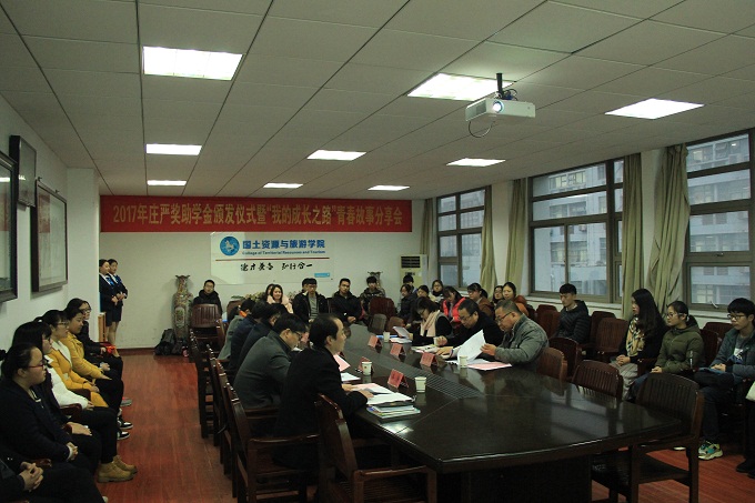 据悉庄严奖助学金已经走过第十个年头,作为学校奖助学金的重要补充,帮助过众多家庭困难的优秀学子。本次会议驱走了冬天的寒意,爱与温暖在心中驻足。庄严十载,情系国旅,爱心传承,经久不衰!