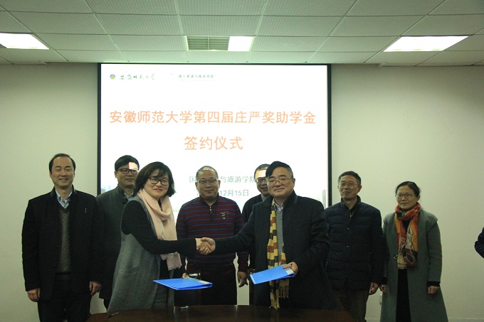 下午四时,签约仪式开始。乔静首先介绍了庄严奖助学金概况。自2008年起创立,庄严奖助学金经历了资助人数、金额的逐步扩大、评奖机制的逐步完善,至今日,累计资助金额已超百万,受助学生上千人次,是安徽师范大学募集社会化助学金“设立时间最长、覆盖面最广”的奖助学金之一。随后双方与会人员开展座谈并举行签约仪式。