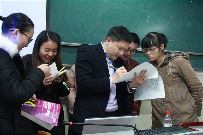 会议结束后,同学热情不减,上前与陈剑讨论在准备考研数学时遇到的问题,陈剑十分耐心地与同学们交流心得与备考经验,帮同学们解决学习上、心态上的一系列问题。场面十分热闹,大家纷纷表示受益匪浅。