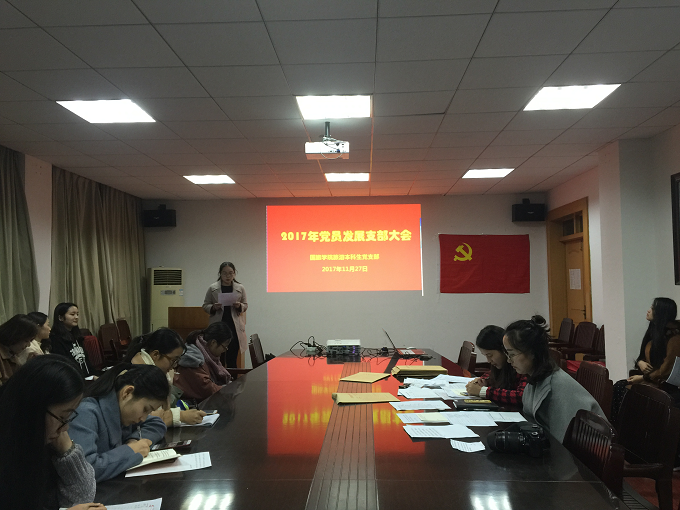 行政楼三楼会议室召开2017年发展党员党支部大会,全体在校正式党员、预备党员参会,部分入党积极分子旁听观摩学习,会议由党支部书记王美主持。