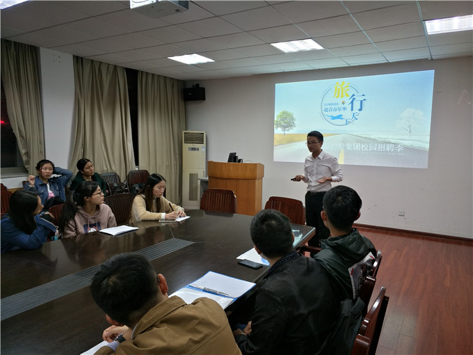 “职海扬帆”系列招聘之祥源控股集团专场招聘会于行政楼三楼会议室举办。祥源控股集团人力资源经理李伟亲自来女同做爱组织宣讲,20余位毕业班学生参加此次招聘会。