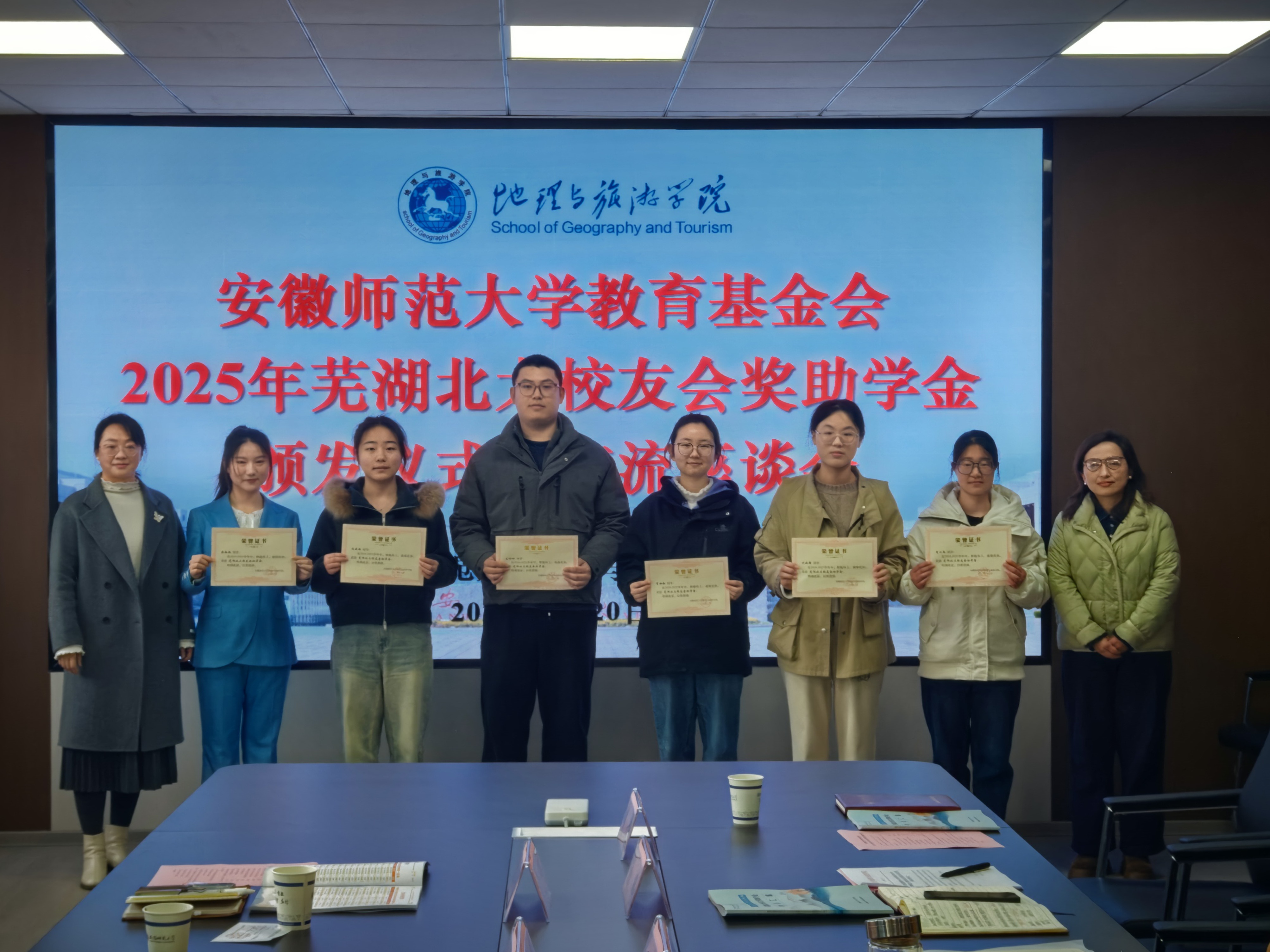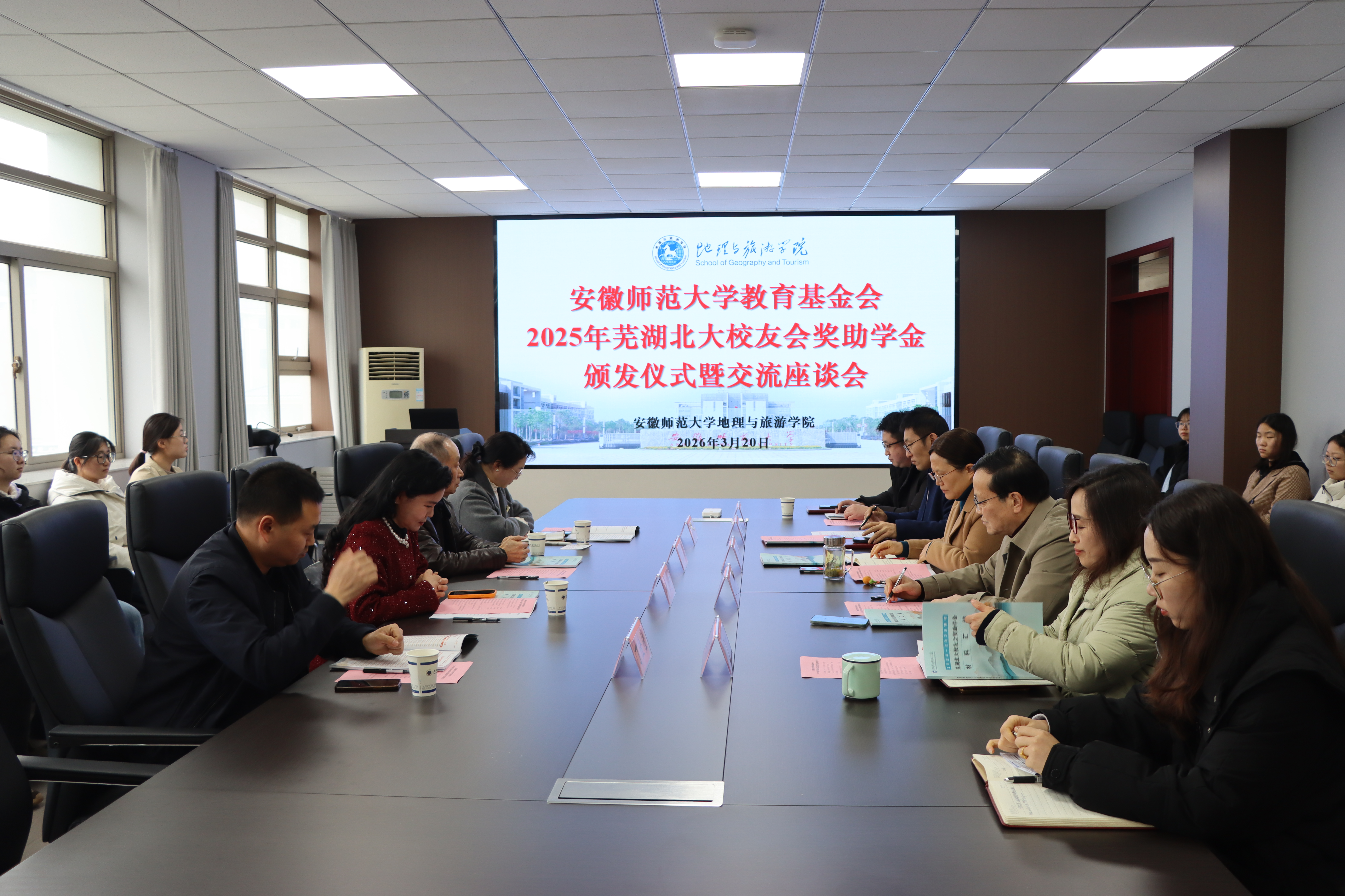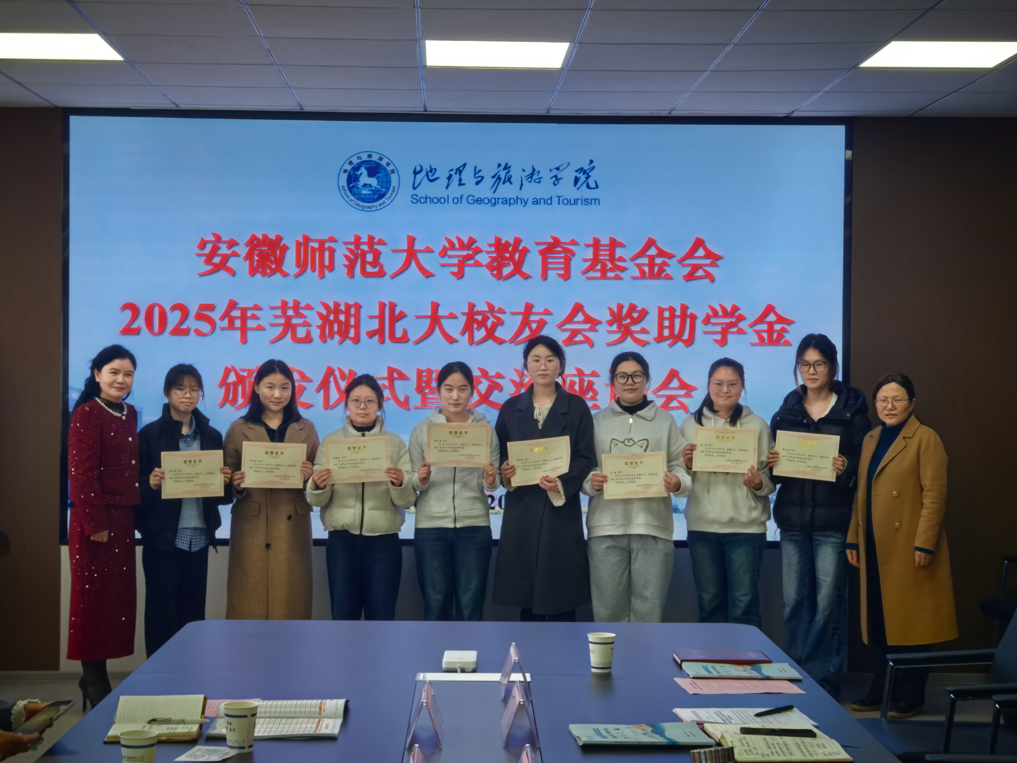 在学院行政楼三楼会议室举行2025年“芜湖北大校友会”奖助学金颁发仪式暨交流座谈会,北京大学芜湖校友会副会长周玉森,常务副会长童劭琼,副秘书长陶晓燕,芜湖传媒集团新视界媒体中心首席记者丁佳佳,校教育基金会副理事长余国升,学院院长方凤满,副院长孙鹏、汪文文以及女同做爱