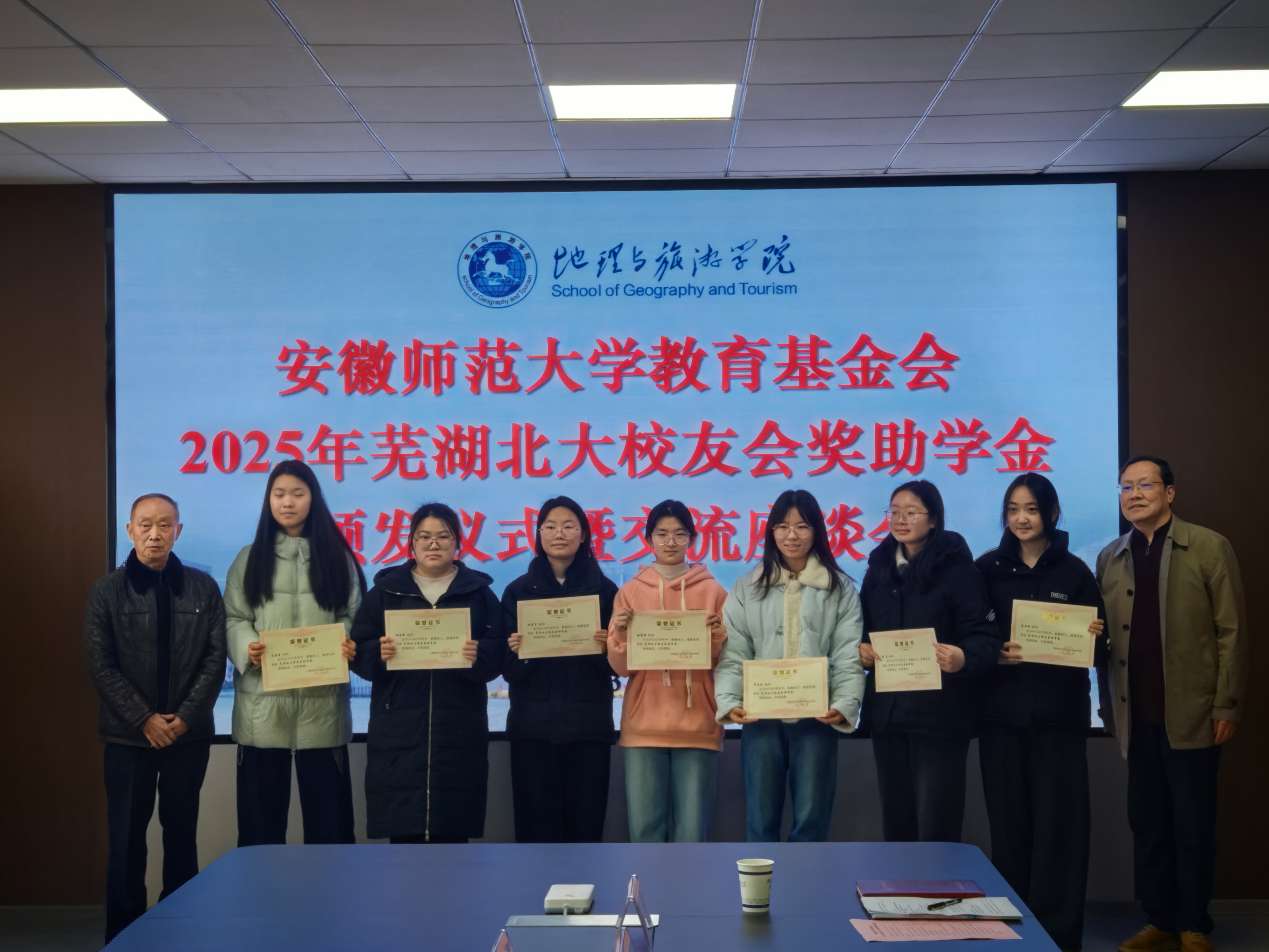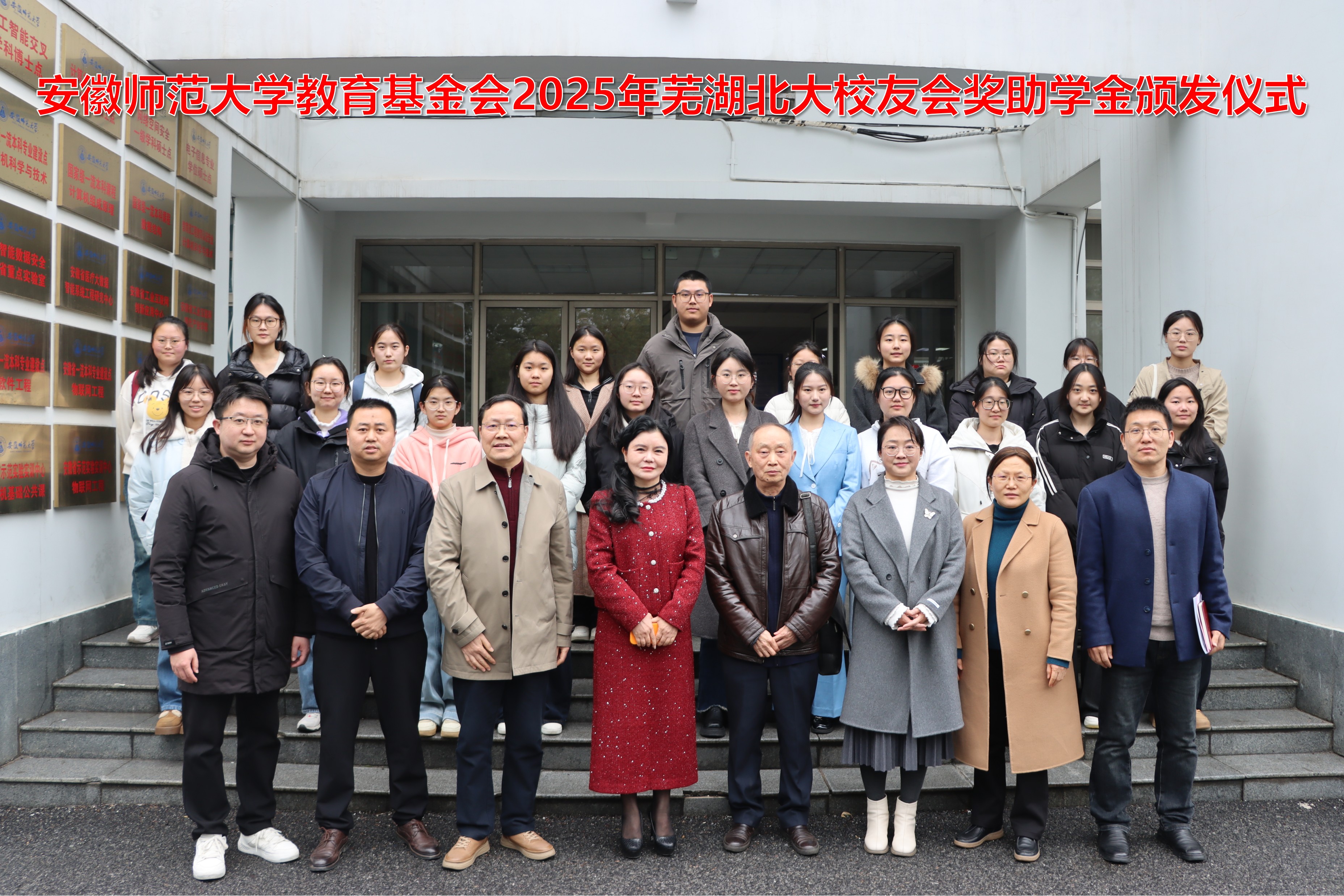仪式上,钱程介绍了“芜湖北大校友会”奖助学金概况以及评选过程。童劭琼介绍了“芜湖北大校友会”奖助学金的设立初衷,讲述了北京大学芜湖校友会与安徽师范大学难以割舍的情系。孙鹏宣读了颁发决定,通报了2025年度“芜湖北大校友会”奖助学金获奖受助学生名单。周玉森、余国升、童劭琼、方凤满、陶晓燕、汪文文等分别为获奖受助代表同学颁发证书。