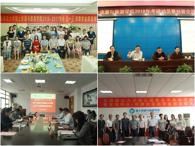 还充分发挥人才培养、教学科研和社会服务的资源优势,鼓励学生志愿者积极开展文明旅游、旅游精准扶贫等公益项目推广与文明创建活动,获得安徽省旅游局、安徽省精神文明建设指导委员会办公室联合颁发的“2016年安徽省文明旅游工作先进单位”称号。三是积极营造文化育人氛围。注重传统文化传承,面向全院学生开展传统文化教育系列活动,邀请专家为广大师生传授国学、讲解家风,坚持开展花津悦读、读书报告会等活动,在学生中掀起学习优秀文化、弘扬敬老孝亲的文明风尚,院大学生爱心者协会被评为安徽省首届“敬老志愿服务模范单位”称号;繁荣校园文化活动,指导学团组织立足专业,结合重大时政节点,灵活有效的运行新媒体,开展共融、共享、共赢的校园文化品牌活动,如雷锋义务导游、防震减灾宣讲、“美丽师大?魅力芜湖”导游大赛、地科化石展、皖南写生作品展、“校园RunningMan”趣味运动会、“红歌嘹亮”合唱比赛、“栀子花开”欢送毕业生歌会等丰富多彩的文体活动。
