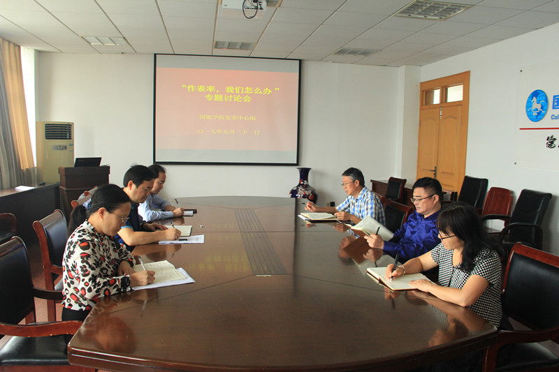 四楼会议室召开中心组理论学习会,并围绕“作表率,我们怎么办”专题进行集中研讨。会议由院党委书记贾冠忠主持。全体院领导班子成员参加了会议。