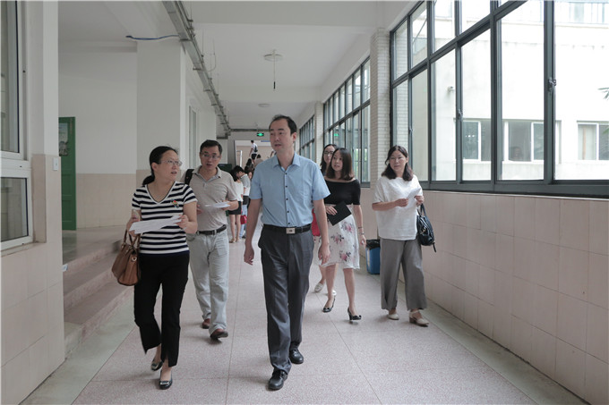 领导班子成员按照全天四个时段组成四个分队走进行知楼的教室,检查新学期的开课情况。