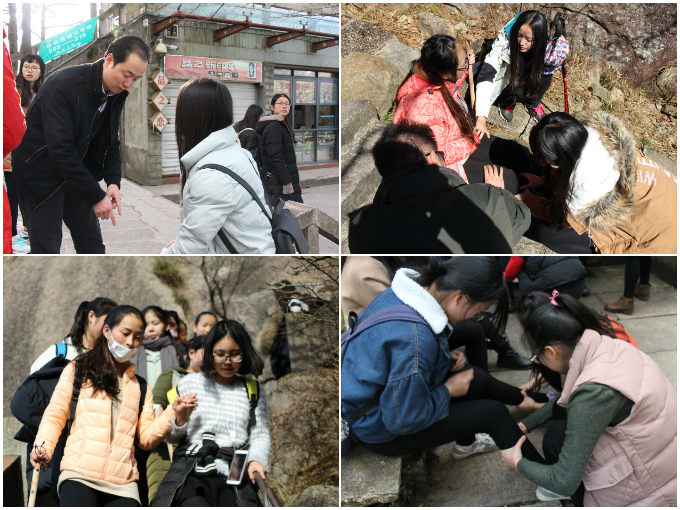 五天的行程,有世界文化遗产地的人文秀美,有大自然鬼斧神工的叹为观止,有酒店行业标杆的参观学习……抵达黄山市黟县境内 ,各小组分头对世界文化遗产地、中国画里乡村宏村的建筑文化、风土习俗、雕刻艺术、宗教信仰以及旅游开发和保护进行了问卷调查,对乡村旅游示范点——主题景区翡翠谷进行了调研。在接下来的两天实习中,全体学生铭记指导老师的谆谆教诲,铭记实习肩负的学习使命,一路奔赴向前;同学们攀登了雄伟壮阔的黄山,山上美好风光尽收眼底,同学们志气高涨,且歌且行,从云谷寺一路不懈向前,攀爬至白鹅岭及北海宾馆,全程15里,最先抵达终点者仅用时约一小时十分钟,尽管途中有同学身体轻微不适,但领导耐心关怀,老师贴心帮助,同学相互搀扶,无一人掉队,互助友爱的情感在山野中升华。次日,同学们黎明即起,不畏冬晨严寒,攀爬至始信峰欣赏黄山日出。随后集体从北海出发步行至光明顶、鳌鱼峰等,最终从迎客松处步行下山,山路陡且直,同学力更足,同学们前段时间刚结束的导游资格考试的相关知识在实践中知行合一,班级毅力在攀登中孕育。