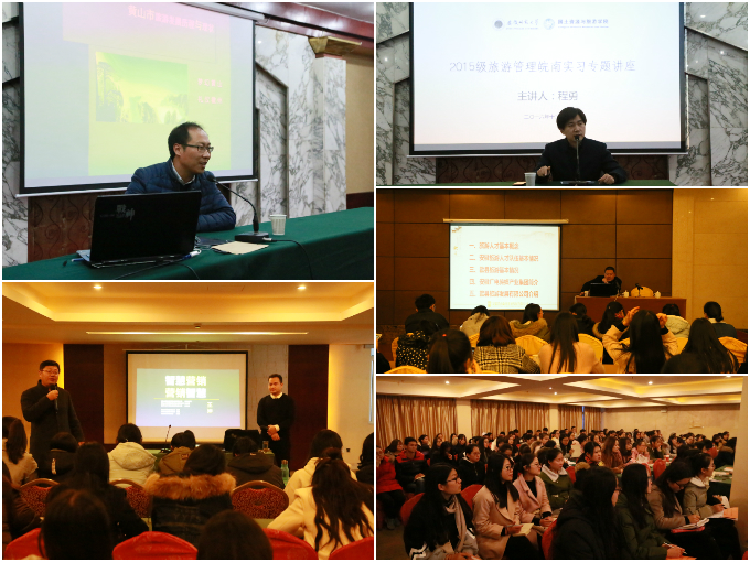 徽州古城管理委员会办公室主任、旅游发展有限公司副总经理汪建军的讲座从安徽省旅游人才队伍发展现状、歙县旅游基本现状等五个方面逐一展开,接着他又将徽州古城及周边景区旅游项目规划现状及未来发展方向向同学们详细说明,并热情的欢迎同学们投身徽州古城旅游发展事业中来。