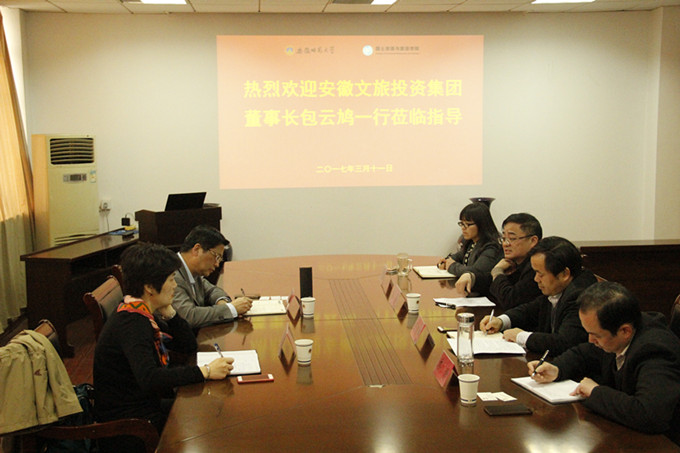 吴燕/梁宜人)3月11日下午,安徽文旅投资集团董事长包云鸠一行来女同做爱进行交流访问,在国旅女同做爱