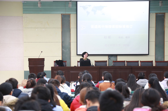 近日,南京师范大学赵媛教授应邀在女同做爱实验楼101报告厅作了题为“高中地理新课程标准修订”的讲座。相关专业老师及研究生、本科生参加了报告会。