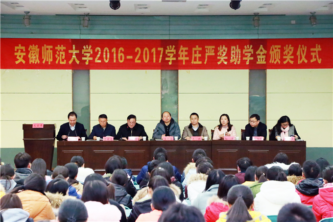 据悉,安徽师范大学庄严奖助学金自2008年起创立,旨在通过奖励和资助的方式,帮助学生解决学习、生活上的困难,使他们能够励志成才,时至今日,庄严奖助学金的精神鼓励已远超其物质鼓励,是我校募集社会化助学基金设立时间最长、单个奖助金额最大、覆盖面最广的一项奖助学金之一。