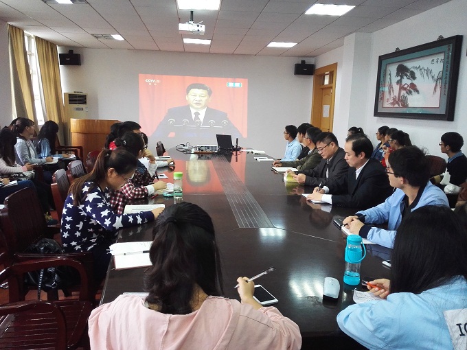 组织学生党员和部分54期积极分子培训班学员在院三楼视频会议室收看了此次大会,学习交流习近平总书记重要讲话精神。院党委书记贾冠忠、院长苏勤,党委副书记乔静等参加了此次活动。
