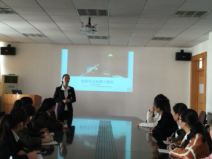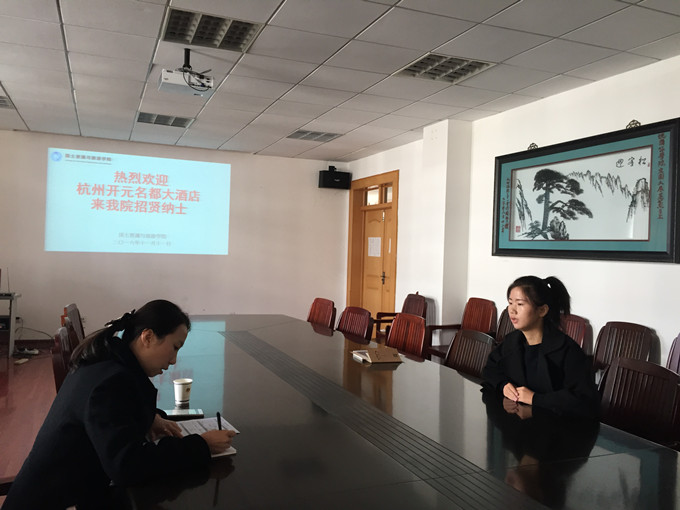11月11日上午,杭州开元名都大酒店在院行政楼三楼会议室举办招聘会。杭州开元名都大酒店人力资源总监陈静、旅游管理专业实习秘书洪娟、辅导员赵将出席招聘会。来自2013级、2014级旅游管理专业的20余位同学参加了本次招聘会。