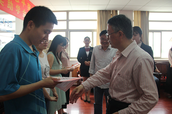 向爱心人士捐款助学的善举表示了衷心感谢,对获奖的学生表示了祝贺,并向获奖受助学生细述了三项奖助学金的缘起和雷忠平、刘明达、何朝斌三位创始人的义举,在感怀爱心人士的同时,苏勤对同学们提出三点希望:一是希望同学们胸怀理想,志存高远,今后能为国家社会作出贡献;二是希望同学们脚踏实地,刻苦钻研,以往年受资助的优秀校友为榜样,不断追求卓越;三是希望同学们学会感恩,奉献社会,将爱心一直传递下去。随后,张玉新郑重宣读了2015-2016学年雷忠平奖助学金、明达奖助学金和何朝斌奖助学金的颁发决定。方富军、张玉新以及女同做爱