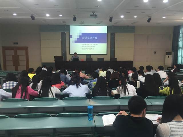 101教室,与国旅学子进行了关于芜湖市古城项目的介绍和交流,旅游管理和城乡规划专业的学生到场学习,此次会议由辅导员吴燕主持。