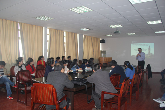 首先,Trevor Hoey教授详细地介绍了研究区的概况、河流沉积物的形态、特征以及河流对于不同类型沉积物迁移的机制;然后,利用视频的方式,直观的展示河流沉积物的迁移过程;最后,总结了河流沉积物的积累、迁移、对河流阶地的侵蚀、堆积以及河流对沉积物搬运之间的相互关系。报告的互动环节,与会师生围绕相关的学术问题踊跃提问,Trevor Hoey教授一一认真作答。讲座在热烈的掌声中圆满结束。