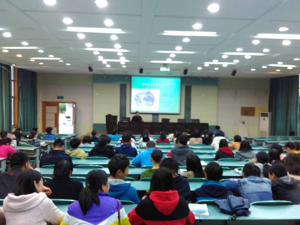 2015级新生做题为“再谈全球变化”的主题报告,地理科学、地理信息科学专业新生150余人聆听了此次讲座。