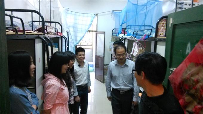 听评课活动结束后,双方学校领导及老师在实习生的带领下一起走进实习生宿舍,了解实习生的生活情况。