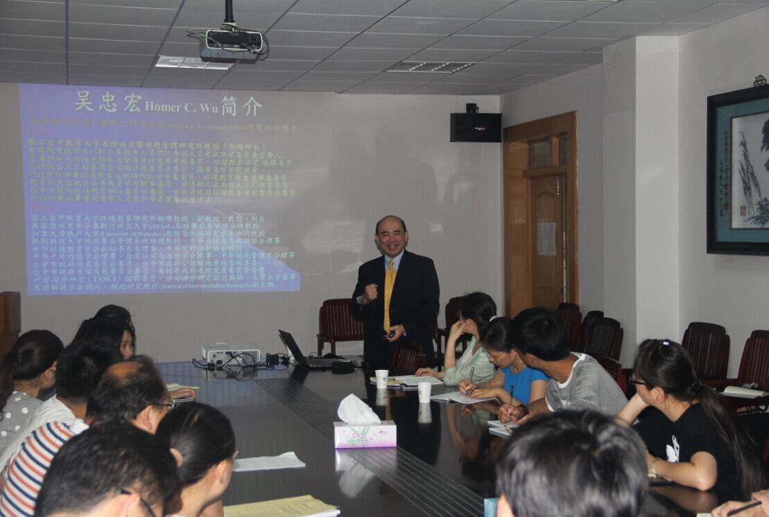 2015年6月2日上午,国立台中教育大学永续观光暨游憩管理所吴忠宏教授,应邀在女同做爱三楼会议室作了题为“How destination attractiveness and place attachment affect environmentally responsible behavior? ”的学术报告。