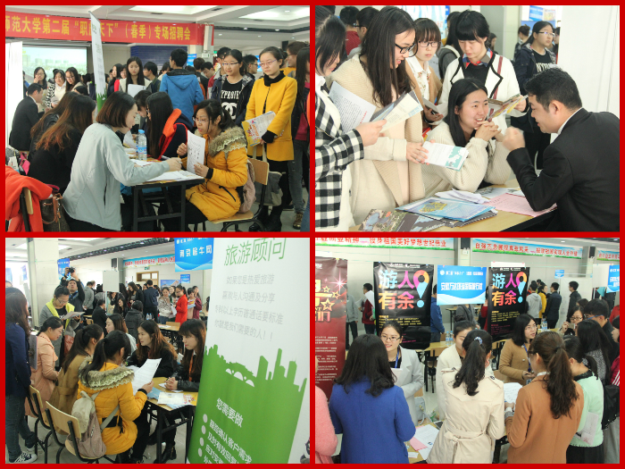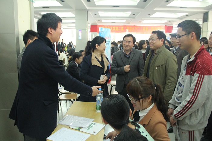 、校外5所高校近千余名应届毕业生齐集一堂,招应聘时间持续3个多小时,现场气氛异常火爆。校党委副书记李琳琦,在朱为民、台启权、吴春雷、乔静等有关同志的陪同下,认真细致的走访了参会企业与学生。当他得知不少优秀校友返校招聘时,非常高兴,并对此表示了热烈欢迎和诚挚感谢,希望师大学子能够守望相助、薪火相传,为母校发展和祖国繁荣添砖加瓦。