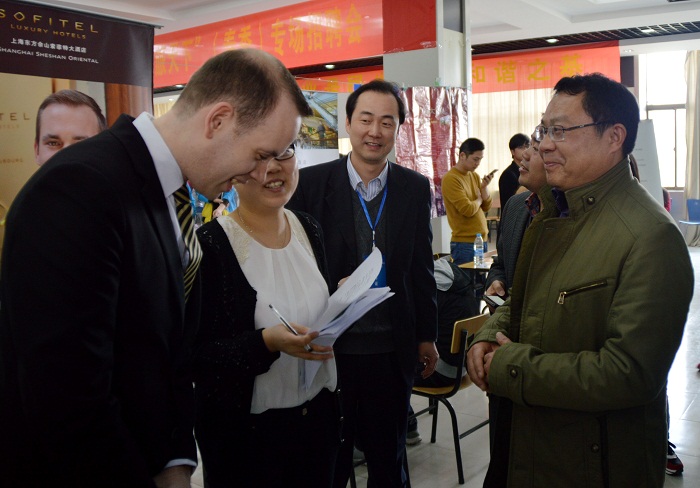 张鑫 )人才济济欢聚一堂,招贤纳士满载而归。3月28日,我校第二届“职旅天下”(春季)专场招聘暨旅游行业发展校园高峰论坛在花津校区大学生活动中心顺利拉开帷幕,来自上海、天津、江苏、浙江及省内高端旅游及相关企业近50家来校招聘,提供各类就业岗位400余个,吸引校内外近千名学生踊跃参与。校党委副书记李琳琦、人事处处长朱为民、学生处处长台启权及国旅女同做爱