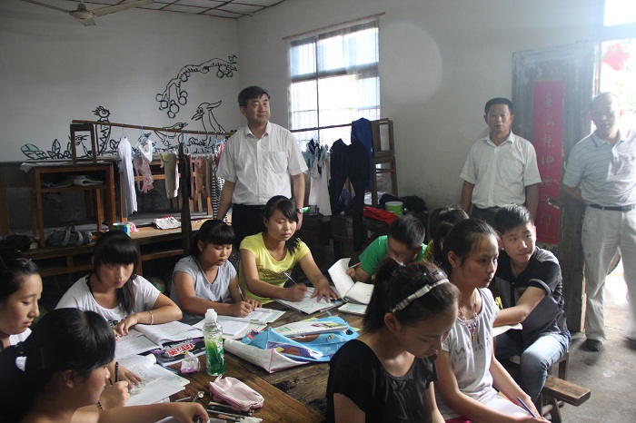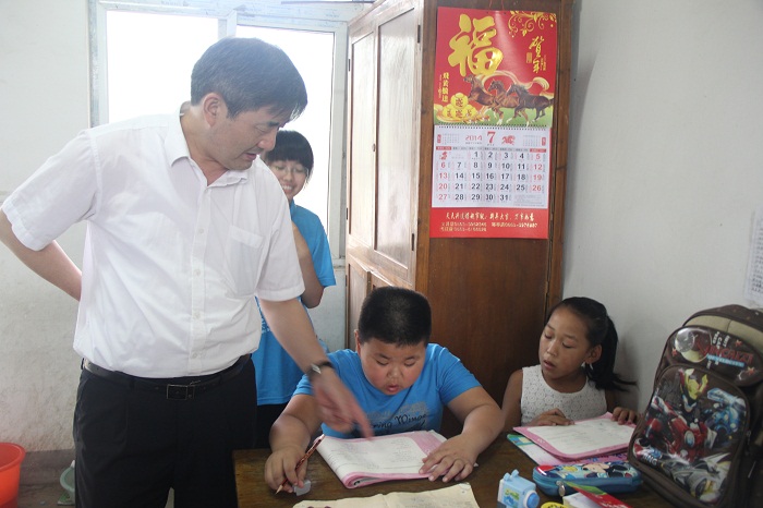 紧接着,王绍武来到了我校实践师生开展骨干挂职、爱心支教的活动现场。在清脆稚气的朗诵声吸引下,王绍武深入了为当地留守儿童开设的暑期课堂,并认真细致地听取了小学生们《少年中国说》的诗文朗诵,还饶有兴趣地与孩子们、实践队员们互动交流,了解支教开展的进程与困难。王绍武等领导老师还实地走访了为实践师生提供食宿的农户家中,查看了同学们的饮食起居,对当地群众大力支持我校开展暑期社会实践表达了诚挚的感激之情。