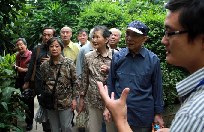 领导班子的陪同下,乘坐大巴车从学校准时出发。当车子行驶到景区大门口时,老教师们都立即陶醉在这久违的田园风光中。在园区导游的引领下,老教师们相继参观了园区实验室、热带植物园、特色花卉园、有机果品园、及葡萄广场等特色景点。当从导游处了解到大浦新农村建设和今后发展情况介绍后,老教师们非常兴奋,深受鼓舞。老教师们都认为,发展现代农业是社会主义新农村建设的首要任务,是科学发展观统领农村工作的方向,是贯彻落实党的“十七”大精神的具体体现,大浦的建设经验对我国广大农村的现代化建设具有很大的借鉴意义。
