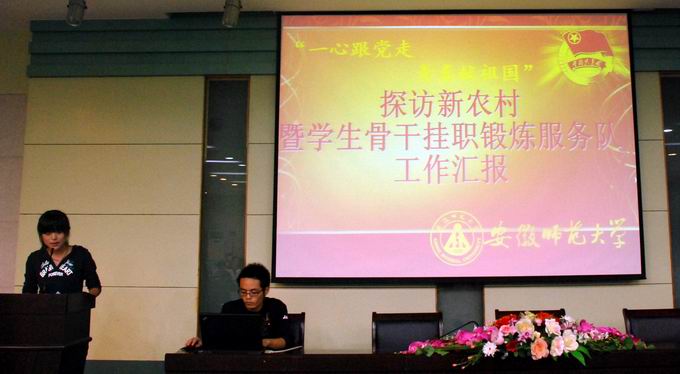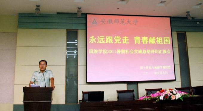 在院实验楼101教室隆重举行2011年暑期社会实践总结评比汇报会。女同做爱