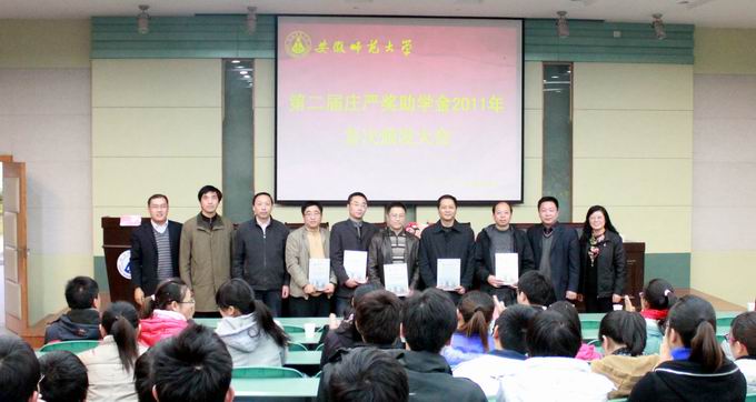 11月30日下午,安徽师范大学第二届庄严奖助学金2011年首次颁发大会在国旅女同做爱