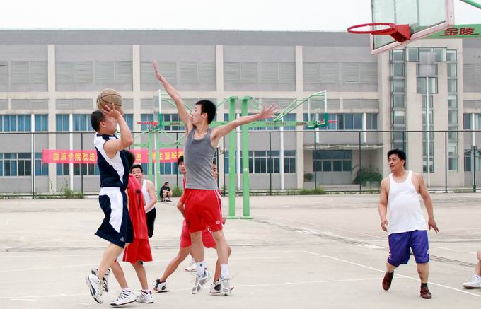在北侧体育场举办欢送2011届毕业生师生篮球赛。院领导班子成员、教职工代表和毕业生代表参加了这次篮球赛。