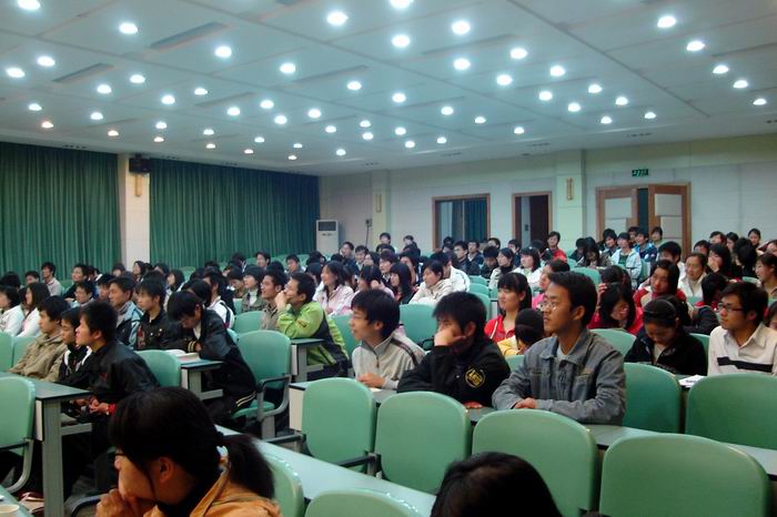首先,袁玉杰科长列举了几个生活中因为一时大意而引发的火灾实例,通过这些案例,同学们了解到了失火罪与纵火罪的区别,并充分认识到所要承担的相应的法律责任,先从法律层面上认识到了预防火灾的重要性。而这些具体的实例也更让同学们提高了在生活中预防火灾的警惕性,告诫大家绝不可以因为自己的麻痹大意而酿成大错。接着,袁科长又集中介绍了一些在面对火灾时的自救方法,并特别指出,当火灾发生时,最重要的一点是要保持冷静,然后寻找出路,要争取时间寻找一切自救的时机。为了进一步提高此次活动的实践性和生动性,袁科长又带领同学们观看全国特大典型火灾案例的光碟。荧幕上的大火熊熊燃烧,一幕幕大火过后的遍地狼藉,一声声遇难者家属痛彻心扉的哭喊,都令同学们感到震撼。这一切都在提醒着我们,安全防范意识要谨记在心,要时刻珍爱自己的生命。