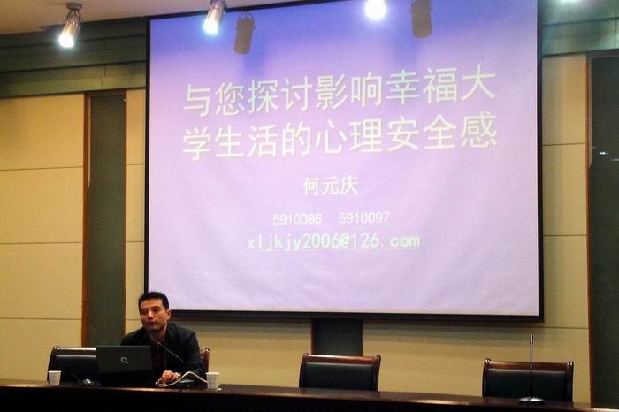 随着社会和生活压力的增大,越来越多的大学生出现了一些心理问题,使我们进一步认识到健康的概念不仅仅停留在身体上,更包括心理上的健康。为了提高广大同学的心理认知,普及心理安全知识,帮助同学们愉快地度过四年大学生活。4月7日晚7:30,我们邀请校心理健康指导中心的何元庆老师为国旅女同做爱