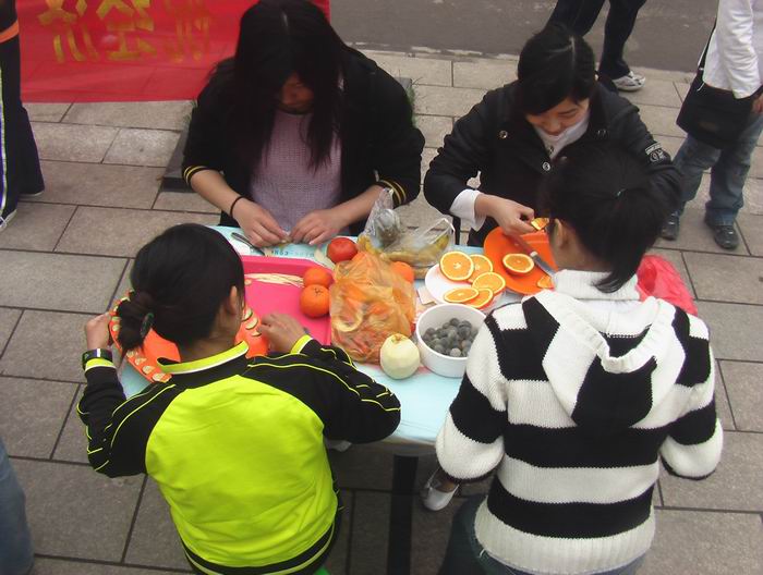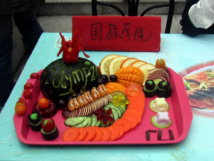 学生会主办的“缤纷水果,五彩奥运”水果拼盘比赛在大学生活动中心门前隆重举办。