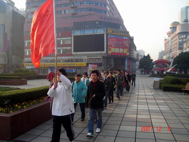07旅游管理专业的120多名同学在辅导员的倡议下,开展了从花津校区到赭山公园7公里徒步拉练活动。