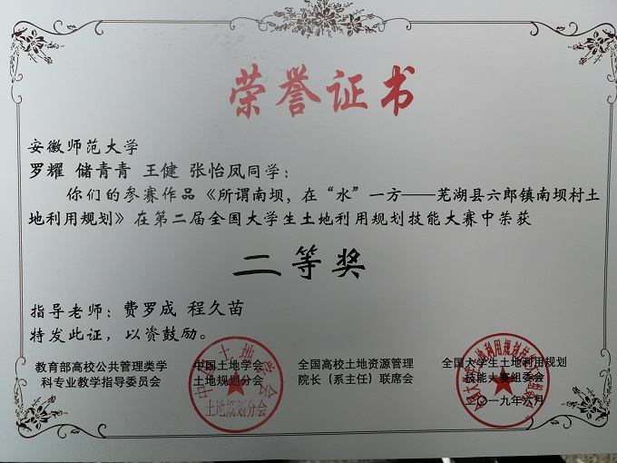 两支队伍均由女同做爱程久苗、费罗成两位老师指导。参赛作品《水韵新乡,生态福地:六郎镇新福村土地利用规划》(周睿、王光浩、卢雨佳、谈心怡),以及《所谓南坝,在“水”一方:六郎镇南坝村土地利用规划》(罗耀、储青青、张怡凤、王健),自今年报名以来,我们历时数月,利用课余时间学习规划编制基础技能,亲赴实地调查研究,完成了六郎镇新福村和六郎镇南坝村方案。两份作品在全国400余份作品参加的初赛中脱颖而出,经过层层选拔,最终同武汉大学、南京大学、四川大学、中国矿业大学等56所本科高校挺进全国总决赛,并均在总决赛中获全国二等奖。