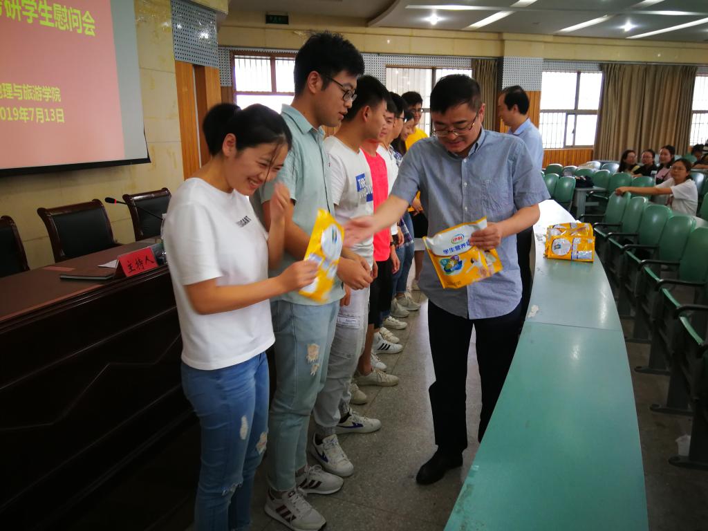 领导老师为同学们送上慰问品以表心意,希望同学们再接再厉,通过自己的努力获得理想的成绩!