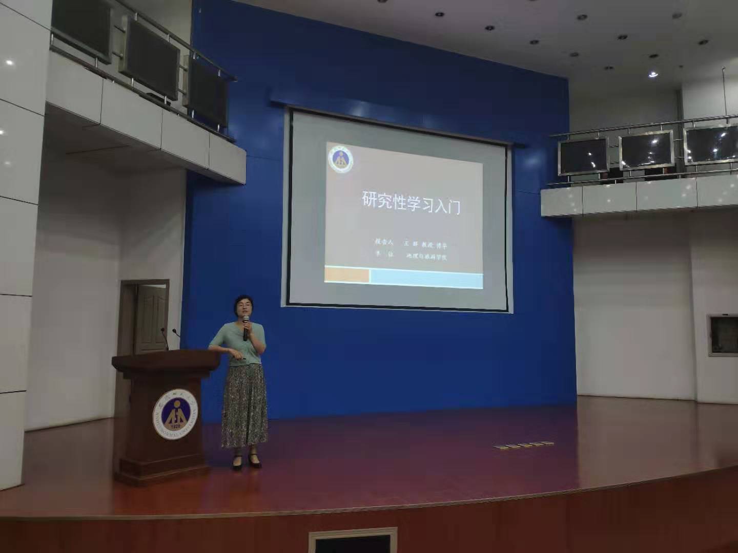 团委书记吴辉和校全媒体中心新媒体工作室主席岳晓婧、副主席李英姿在院实验楼101报告厅为各团队带来了一场宣传工作培训会。吴辉结合新闻稿初稿与终稿,讲授了撰写校园新闻稿件中的误区雷点和技巧方法。并结合优秀新闻稿件,逐字逐句对到场人员进行了业务培训。他希望全体宣传员们能用及时专业、饱含真情的文字记录实践的点滴瞬间,传播青春正能量,发出师大好声音。岳晓婧和李英姿着重在网文、微信推文创作方面结合自身工作经历向大家传授工作经验,并从排版概说、初识编辑器、公众号推荐、创新创意等方面向大家详细解说。