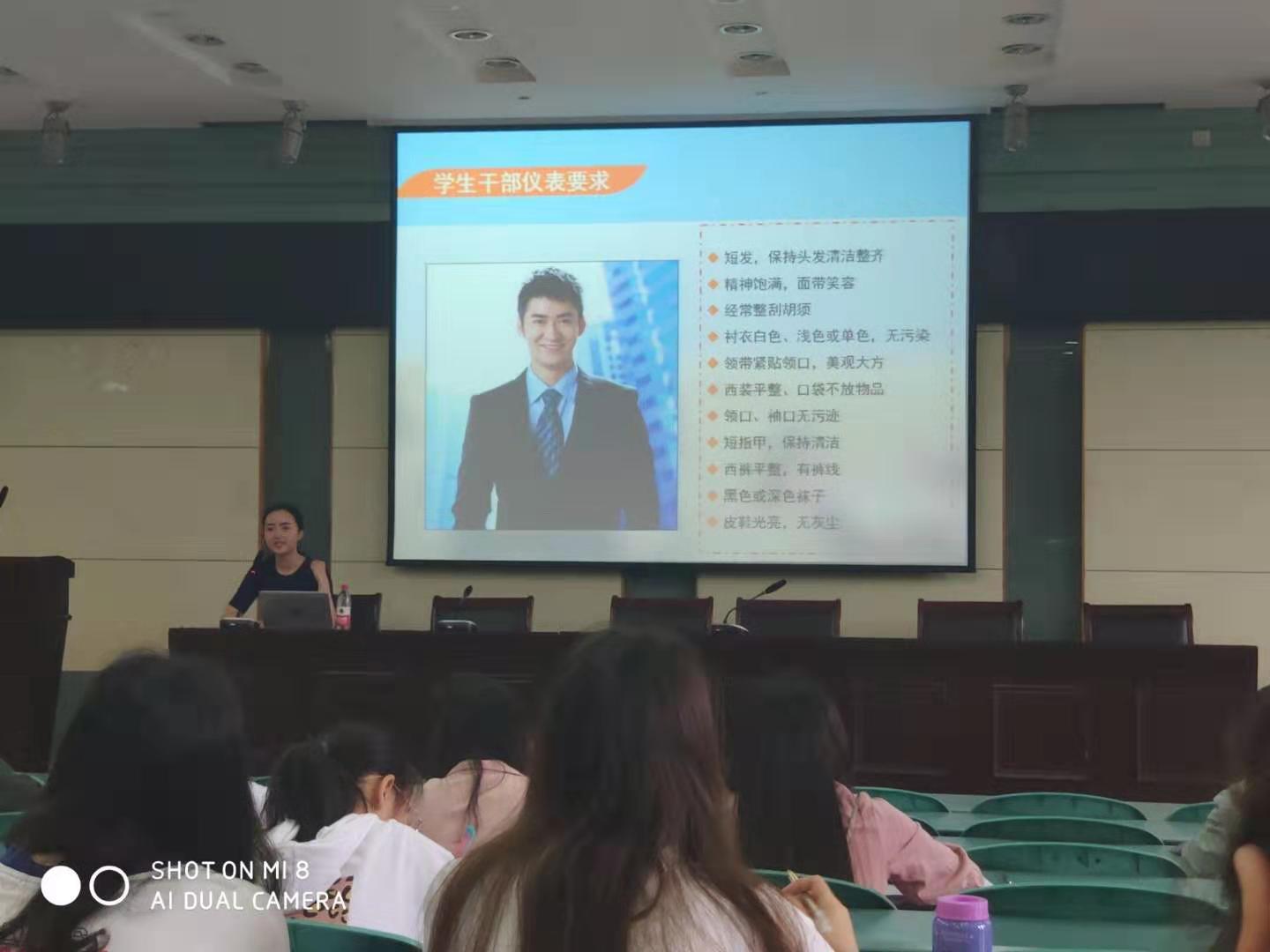 文化礼仪讲师、校友吴燕带来《人际交往礼仪素养的培养与提升》拓展课程,结合生动案例,从个人形象、尊重礼仪、细节表达等几个方面为学生骨干们传授了社交礼仪的实用技能。