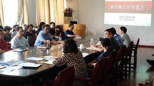 会上,院管领导曹卫东、方凤满、赵冬梅、乔静、贾冠忠分别通报了本科“三教”落实、招生、基金申报、研究生就业、暑期国培计划申报工作、暑期社会实践、政治理论学习和党支部标准化建设等工作,并对近期工作进行布置。接着,苏勤院长就学生教材选用、慕课、基金撰写、秋季安全稳定、迎新生、新生专业思想教育、国庆70周年大合唱、举办全国、全省GIS技能大赛、党支部标准化建设省级验收等近期重点工作作了强调。