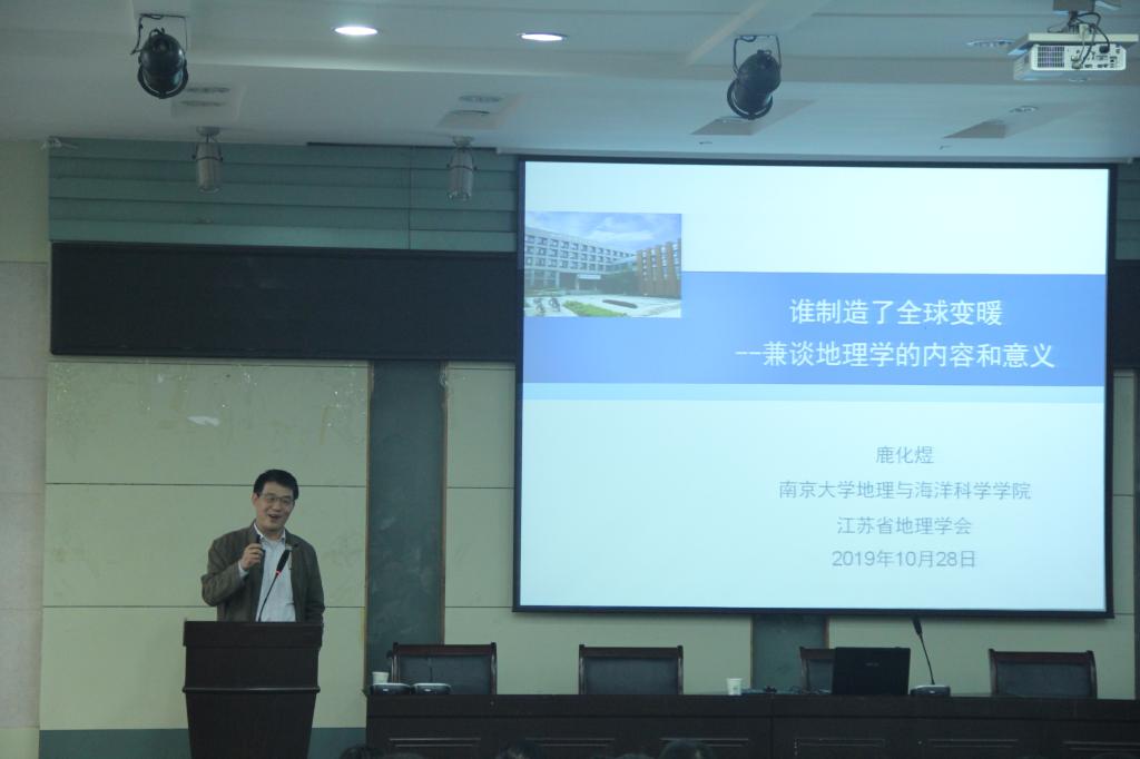 报告会伊始,鹿化煜教授从过去140年的地表温度变化、气候变化及其影响为切入点提出了两个问题:谁制造了全球变暖?减少碳排量的争议何在?接着,鹿化煜教授从多个角度分析了造成气候变化的原因以及新生代全球气温变化的现象,并进一步解释了造成争议的原因在于科学认识上的不确定性和政治经济利益的分歧。鹿化煜教授指出,在未来地球研究计划中可持续发展科学是核心论题,进而强调了可持续发展的重要性,并从地理学的角度进一步解释了可持续发展在全球气候变暖的过程中的必要性。此外,在谈及地理科学的发展趋势时,鹿化煜教授指出,在可持续发展背景下学科交叉融合已然成为趋势。