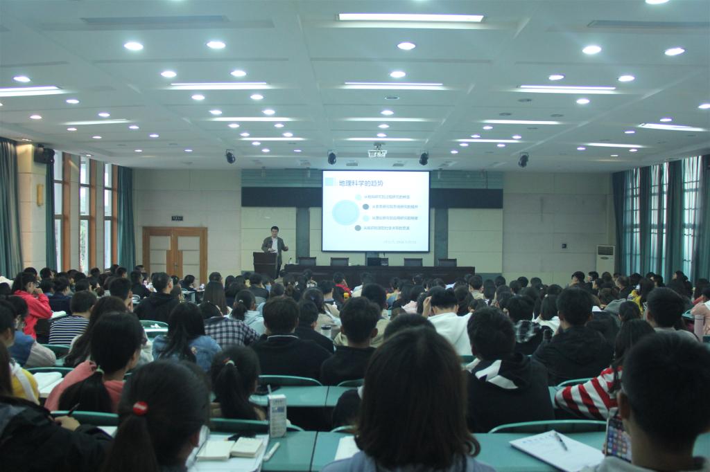 党委书记贾冠忠,相关专业教师,部分专业研究生和2019级地理科学大类全体新生聆听了报告。报告由女同做爱