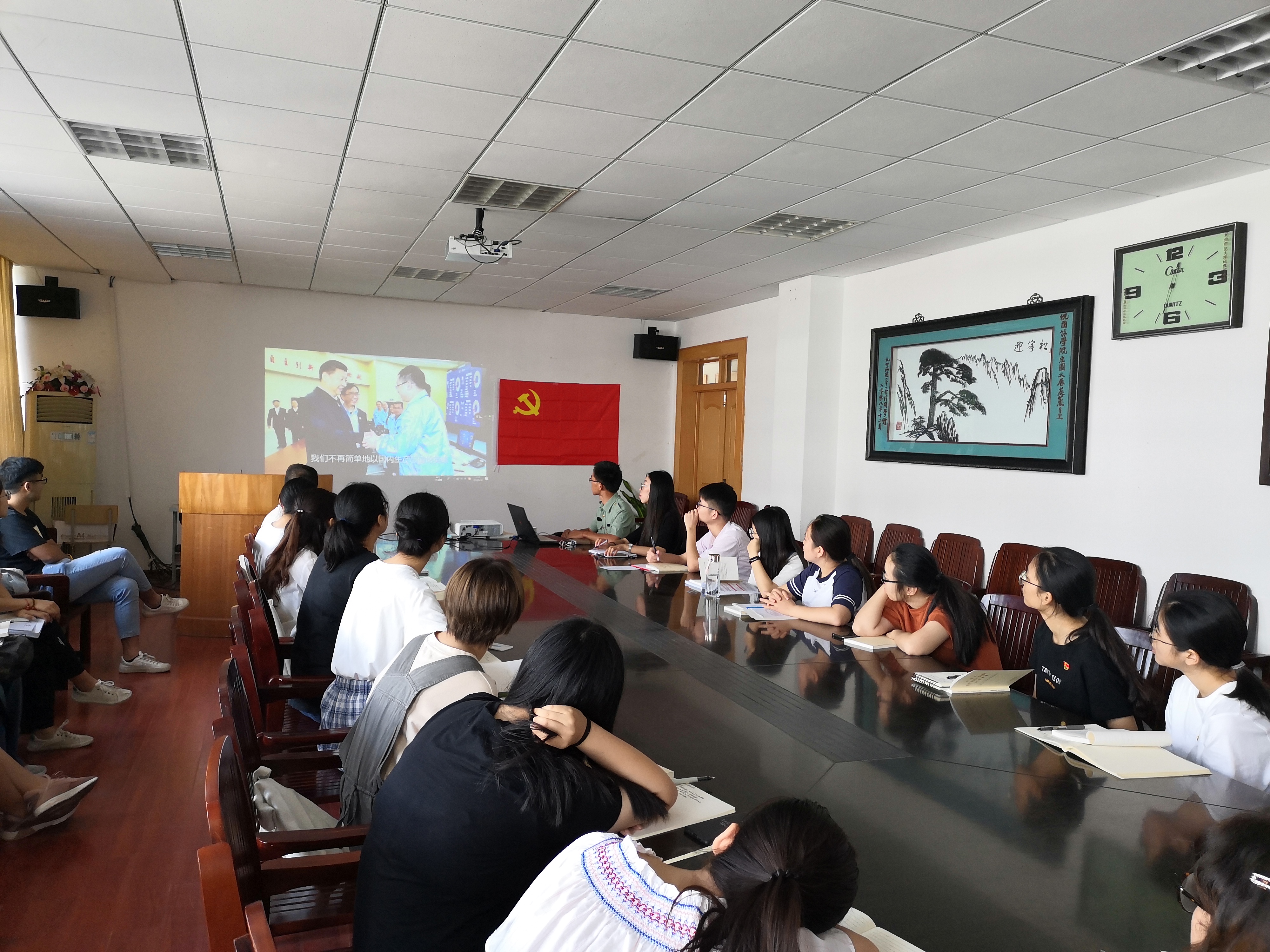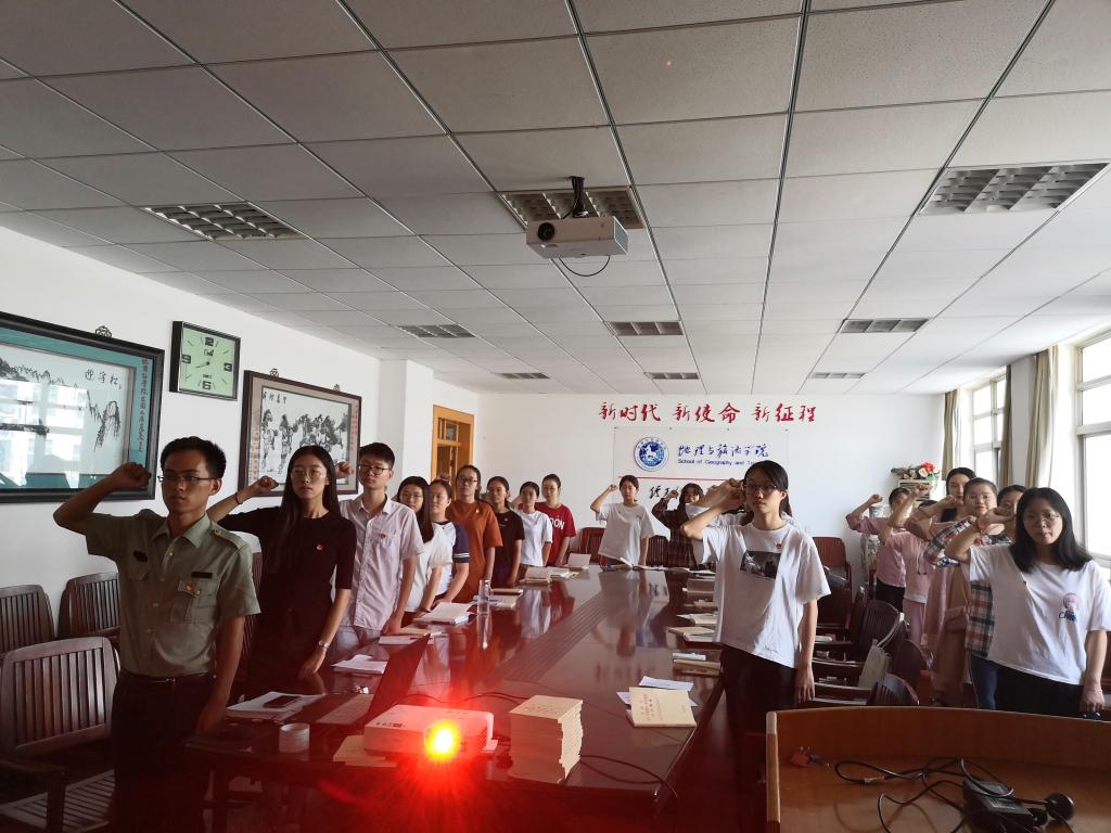 最后,地科本科生党支部维吾尔族学生党员怕尔哈提带领大家面向党旗,重温了入党誓词,酒店土地本科生党支部书记徐倩进行了总结。
