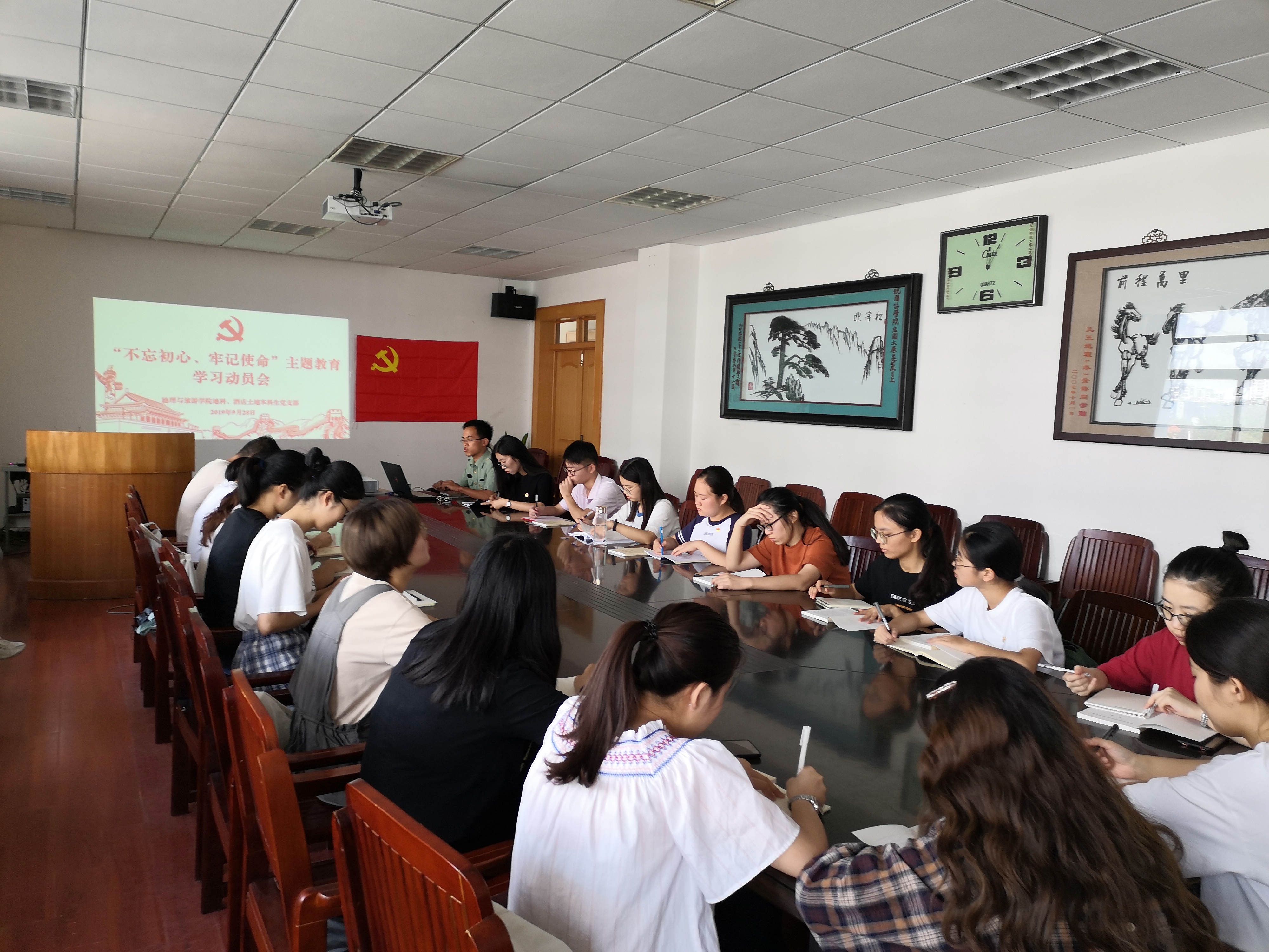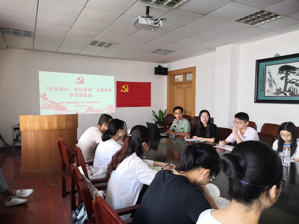 行政楼三楼会议室、王稼祥纪念馆联合开展“不忘初心、牢记使命”主题教育。酒店土地本科生党支部书记徐倩,地科、酒店土地本科生党支部全体党员参加活动。活动由地科本科生党支部书记齐小学主持。