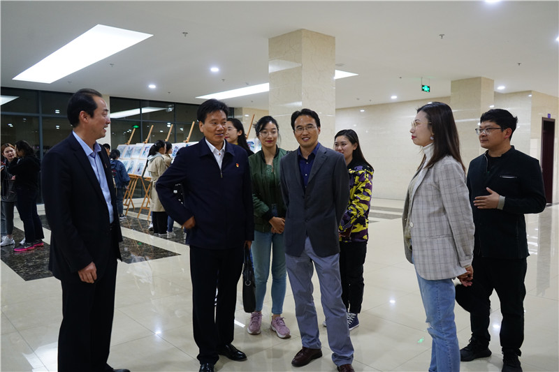 学生工作负责人在院党委副书记乔静、城乡规划专业负责人杨兴柱以及多位专业任课老师、陈祥云的陪同下参观了画展。