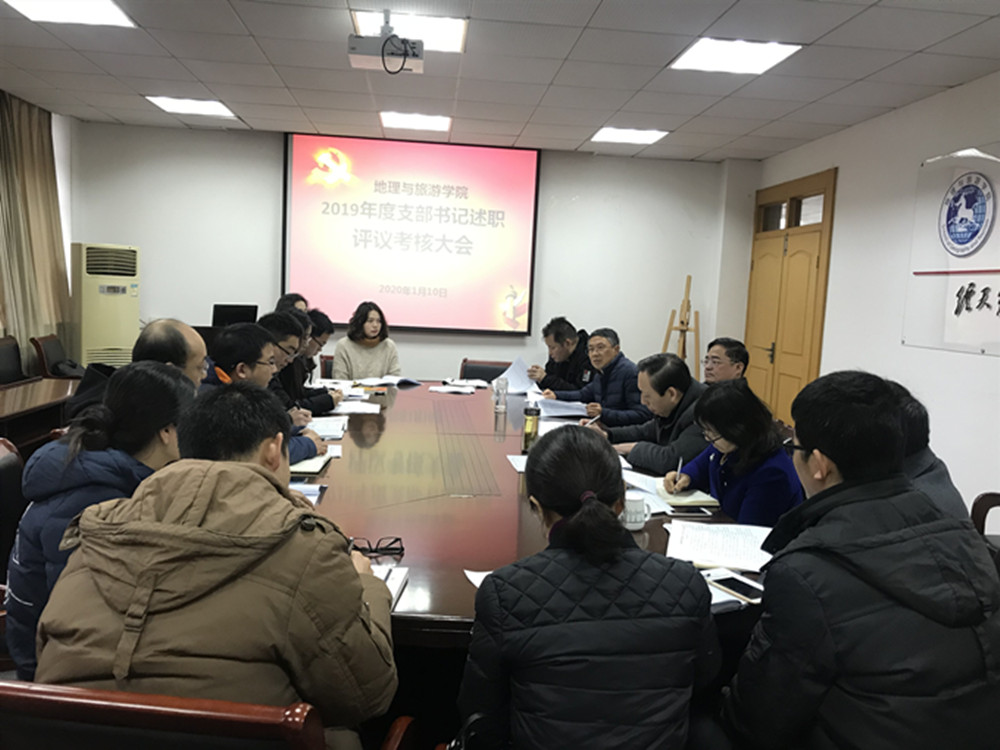 会上,地理系教工党支部、旅游管理系教工党支部、酒店管理系教工党支部、地理系本科生党支部、酒店土地本科生党支部和地信城规研究生党支部等6位支部书记结合2019年度工作实际,重点围绕深入开展“不忘初心、牢记使命”主题教育、贯彻落实新时代党的建设总要求、发挥基层织战斗堡垒推动完成重大任务和存在问题及下一步工作打算等方面进行现场述职汇报,7位支部书记进行了书面述职。贾冠忠对对现场述职的6位支部书记履职情况逐一进行了点评,其他党委委员分别对联系指导的支部书记抓党建情况进行了点评。随后,与会党委委员对各党支部书记2019年度履职情况进行了现场测评。