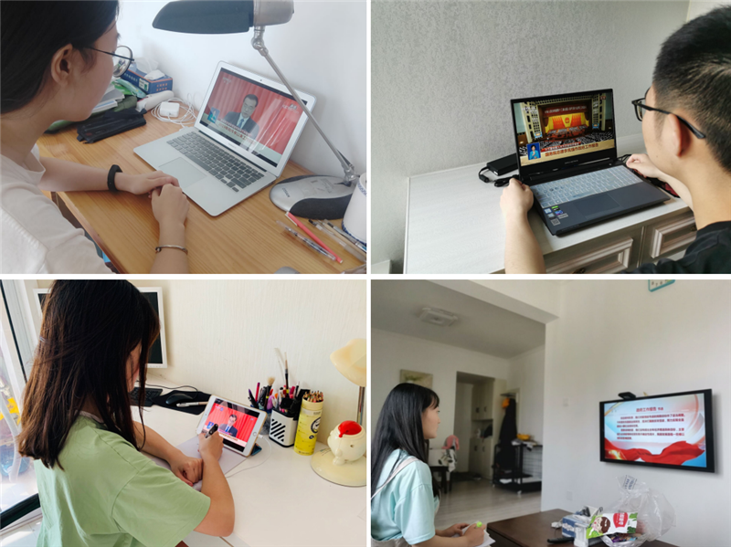 三楼会议室集中收看大会开幕直播。全院师生通过电视、网络、手机等渠道,认真收看全国两会开幕盛况,深刻领会和学习会议精神,并就热点问题开展线上研讨交流,分享学习心得和感想。