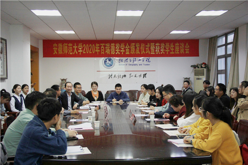 签约仪式结束后,颁发仪式暨交流分享座谈会于院行政楼三楼会议室举办。乔静介绍了百瑞德奖学金主要概况,并指出该项奖学金设立将鼓励学生积极投入社会实践和公益事业,支持学生骨干德智体美劳全面发展,激励他们努力学习,立志回报国家和社会,成为时代新人。