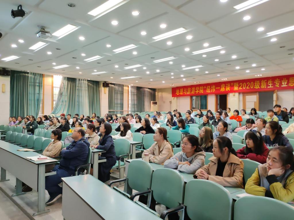 邀请1998级旅游管理专业校友、华测检测认证集团股份有限公司医学事业部总经理兼华东大区行政副总裁张家兵做客“经纬一席谈”,为2020级新生做题为“那些年,我因旅游管理专业而结缘的故事”专题思想教育报告,旅游管理专业负责人杨钊教授担任此次讲座主持人,新生辅导员、全体2020级旅游管理专业新生聆听报告。