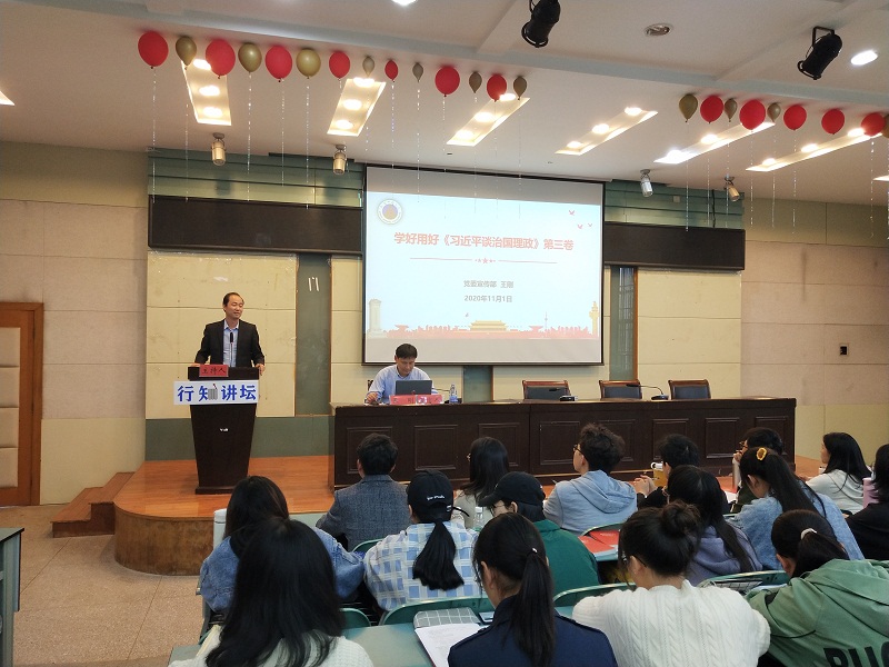 邀请校党委宣传部常务副部长王刚做客“行知讲坛”,为分党校学员讲授《学好用好<习近平谈治国理政>第三卷》专题党课。地旅女同做爱